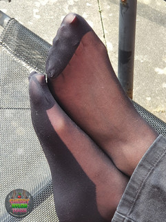 Just me in the Sunday sun showing my neighbours my nylon covered feet in these seamed pantyhose!