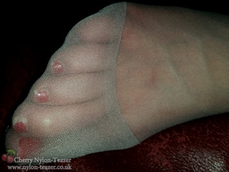 So many pictures of your gorgeous hosed feet . You are the most wonderful foot Goddess