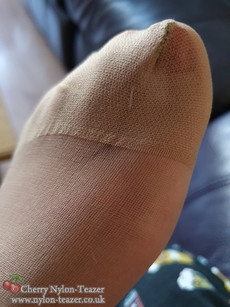 Here are my feet wrapped in tan pantyhose with reinforced toe...